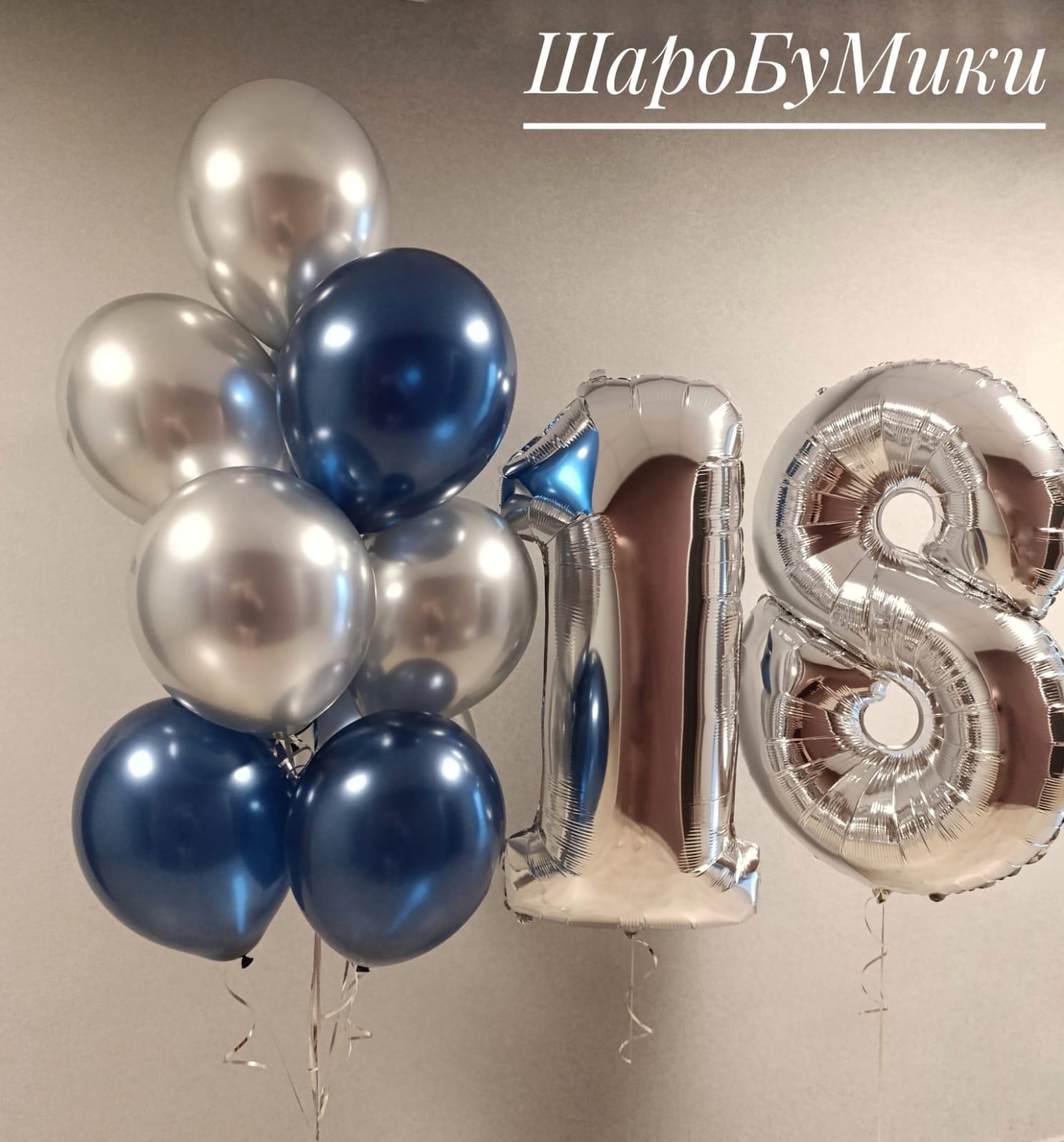 Композиция из двух фольгированных цифр 20 шаров в оттенке Хром. Цвет и оформление выбирается индивидуально.