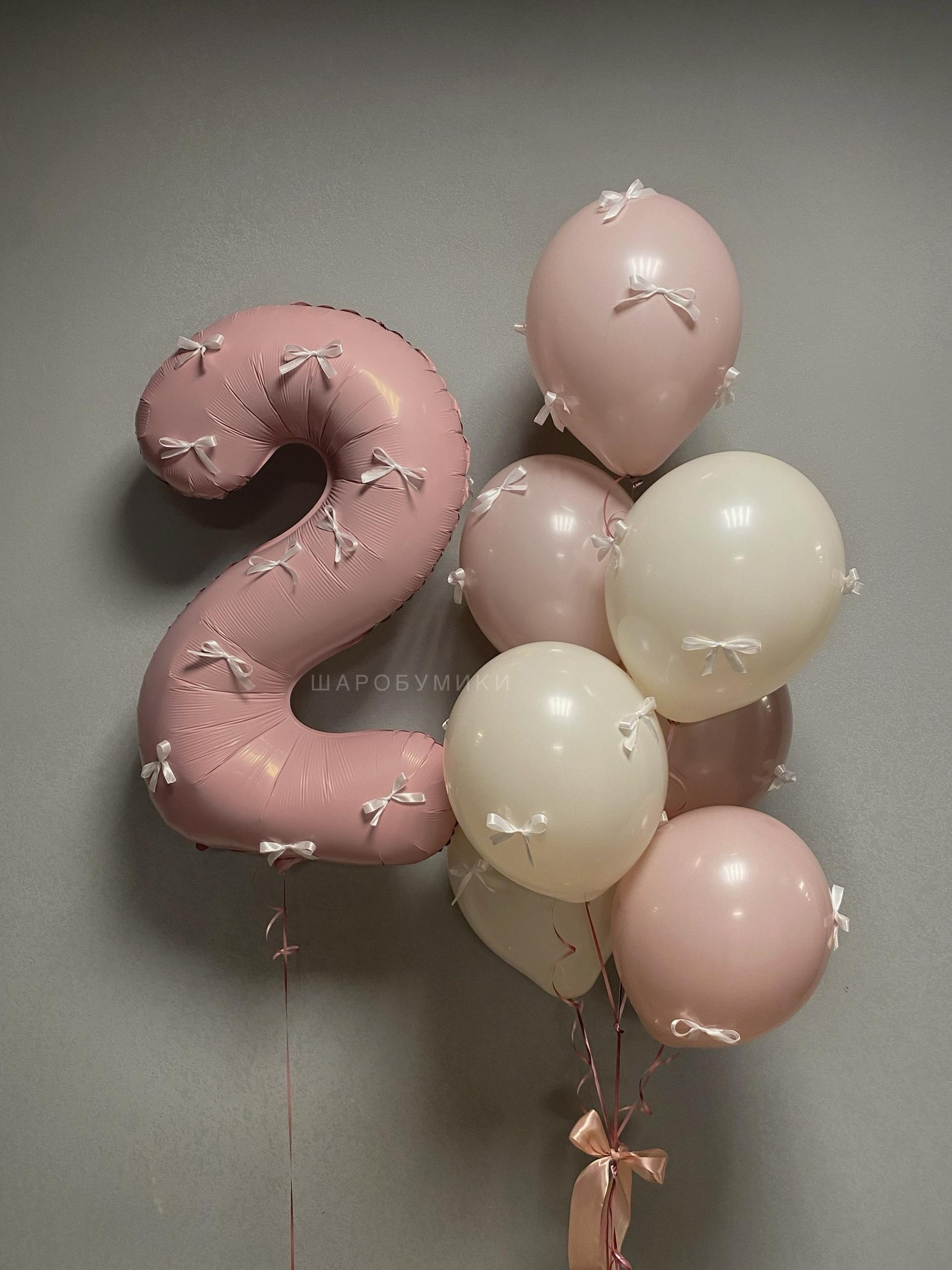 Композиция из 7 шаров пастель с бантиками, и фольгированная цифра с бантиками в ассортименте.
