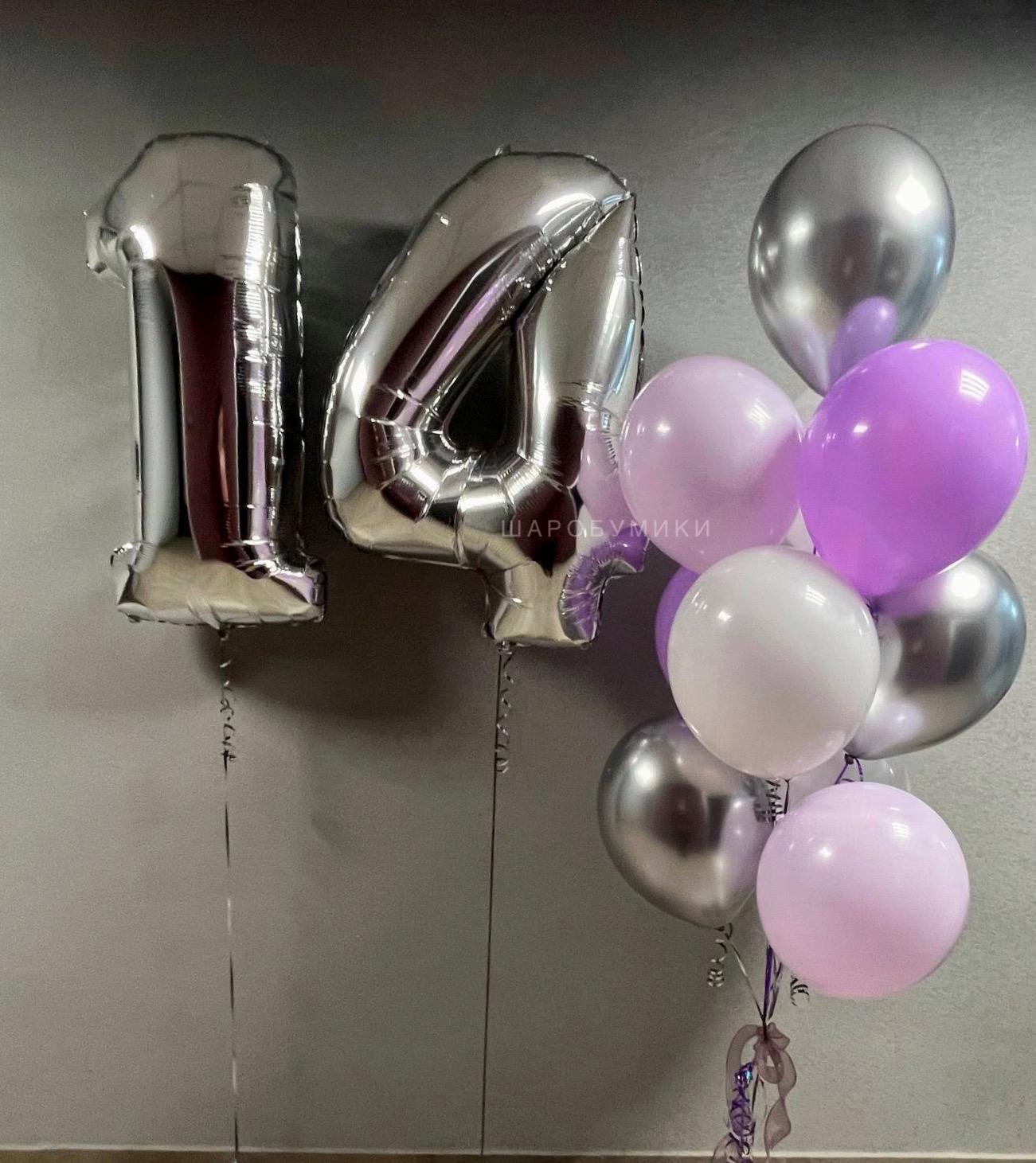 Композиция из 10 шаров. Фольгированные цифры в ассортименте. Цвет и оформление выбирается индивидуально.