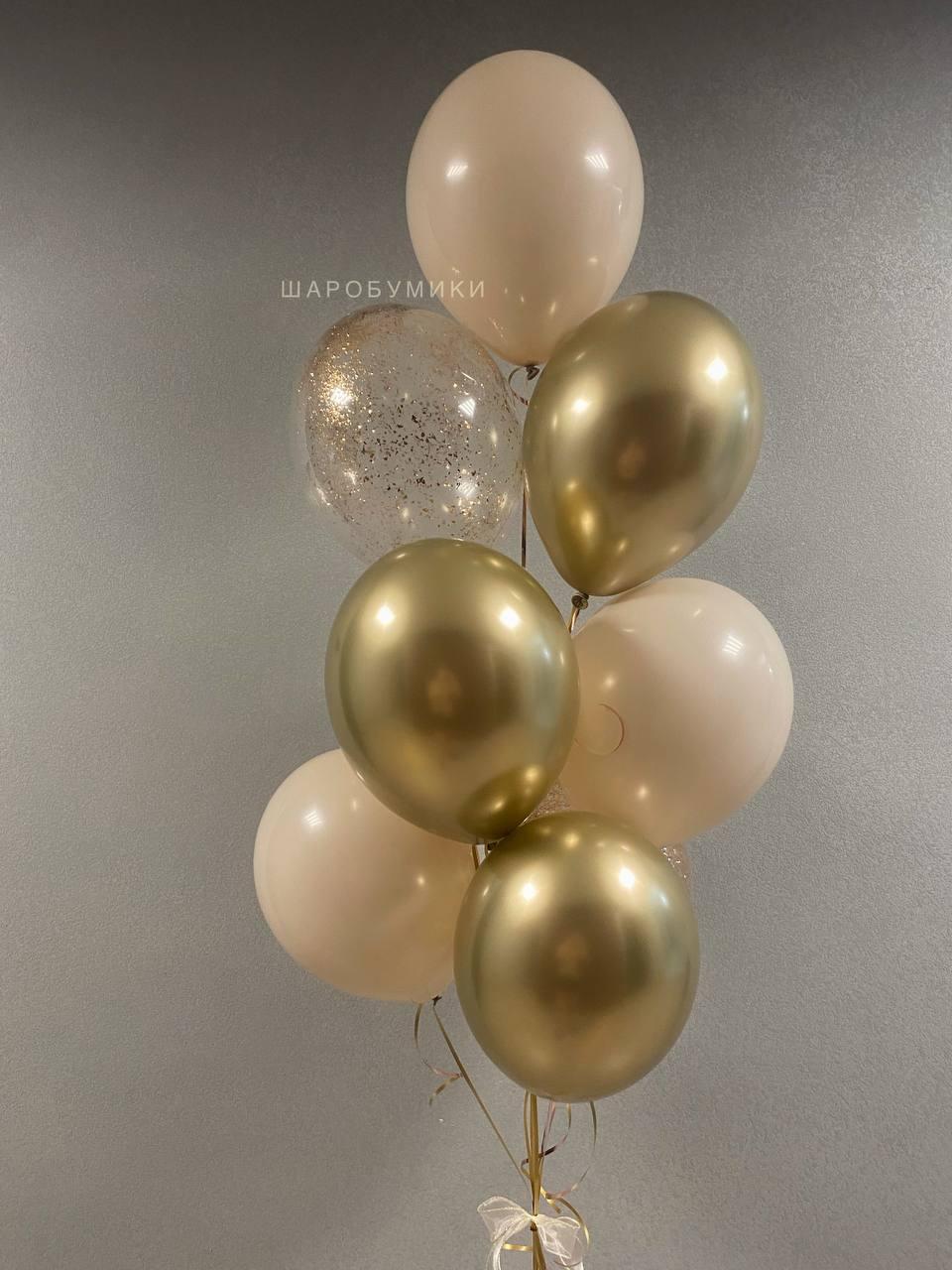 Композиция из 10 шаров в оттенках пастель/хром/конфетти. Цвет и оформление выбирается индивидуально.