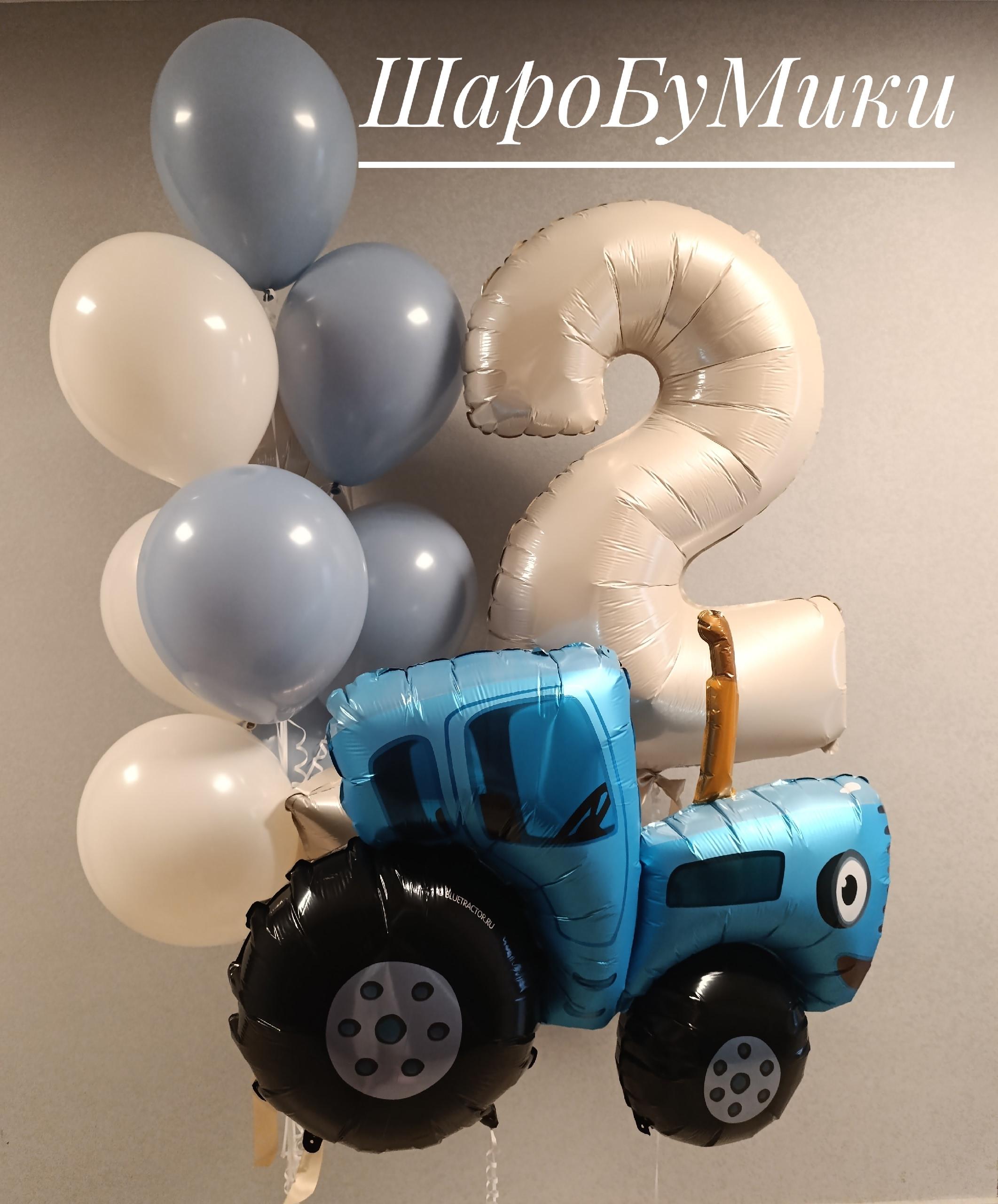 Композиция из фольгированной фигуры Трактор и 10 шаров в оттенке пастель и фольгированная цифра в ассортименте. Цвет и оформление выбирается индивидуально. Индивидуальная надпись на шар.