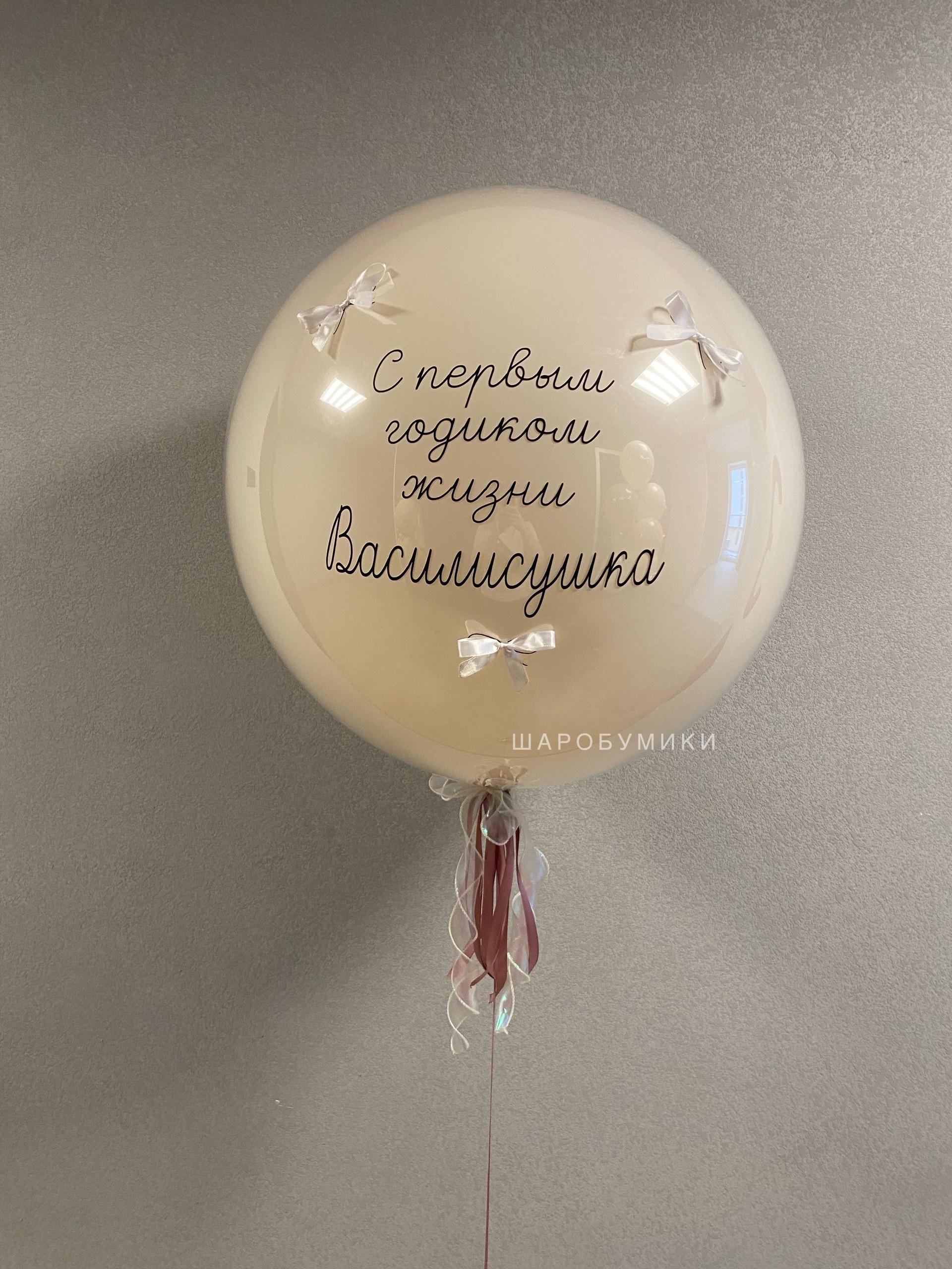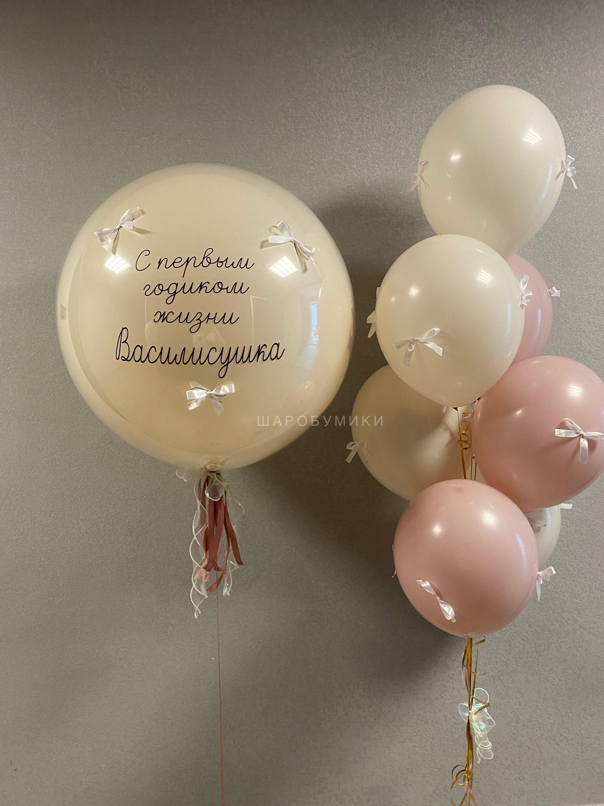 Композиция из 7 шаров в оттенке пастель с бантиками, и Двойной Шар- Гигант с бантиками . Цвет и оформление выбирается индивидуально. Индивидуальная надпись на шар.