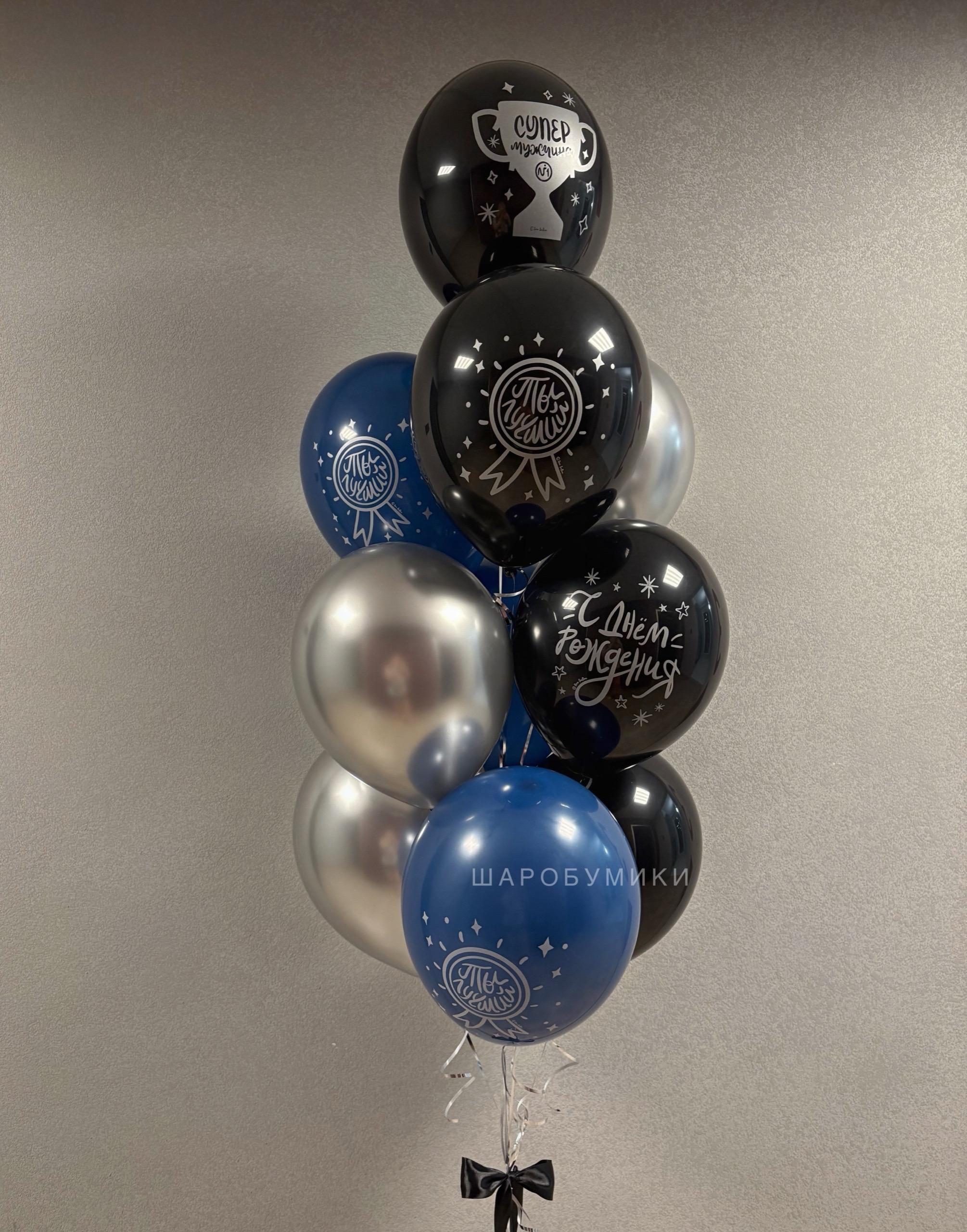 Композиция из 10 шаров (хром\с рисунком). Цвет и оформление выбирается индивидуально.